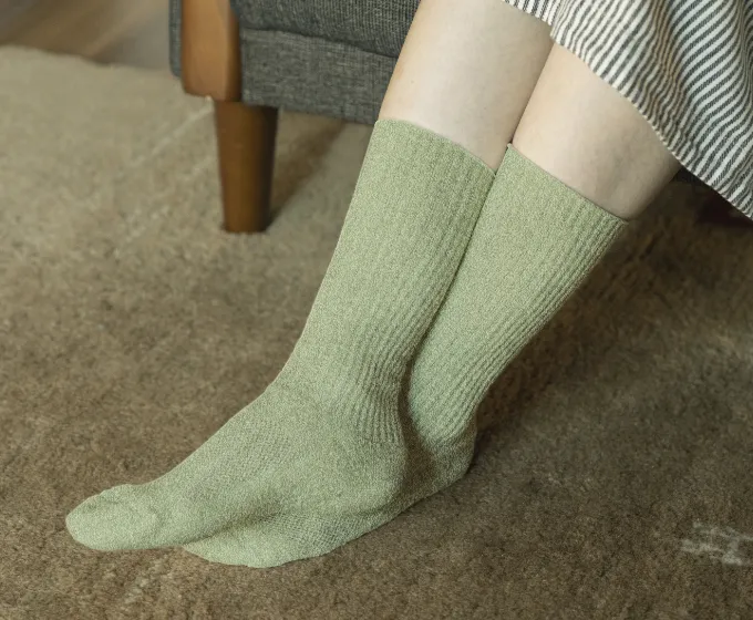 国内外の有名ブランドにも数多く使用されている尾州産地のニット用糸。その高い技術と品質で世界中から信頼を得ている尾州産地の糸づくりのノウハウを結集し、今までにない肌触りの糸を開発し、ハイクオリティで贅沢な靴下を完成させました。